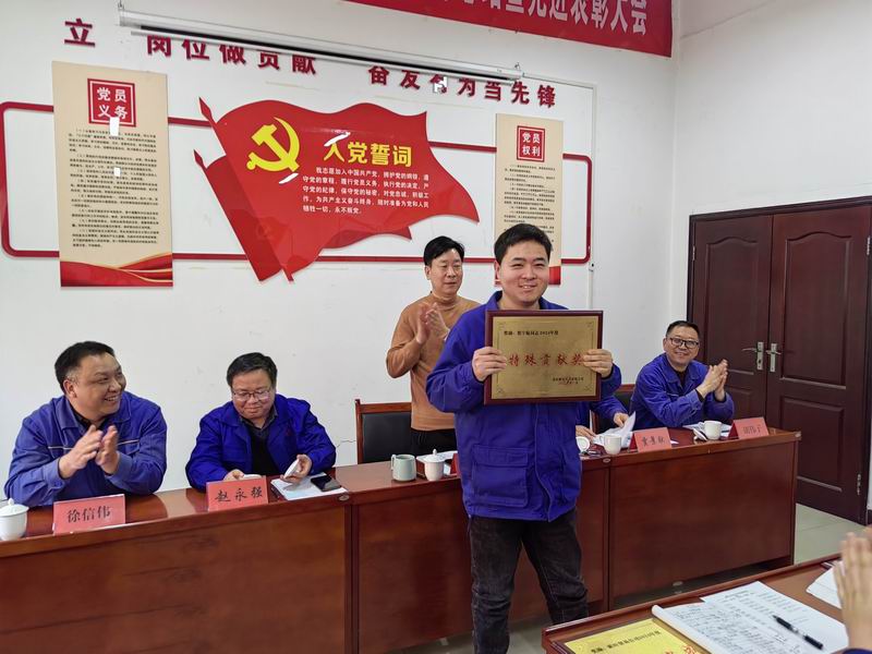 公司副總經(jīng)理趙永強(qiáng)宣讀了《關(guān)于兌現(xiàn)2024年度安全承包獎(jiǎng)的決定》、《關(guān)于表彰2024年度先進(jìn)班組和先進(jìn)個(gè)人的決定》,對(duì)2024年年度工作中作出突出貢獻(xiàn)的炭材運(yùn)行三班先進(jìn)班組、柴彬等8名先進(jìn)個(gè)人予以表彰,并頒發(fā)了先進(jìn)集體獎(jiǎng)等四項(xiàng)集體獎(jiǎng)牌以示鼓勵(lì)。